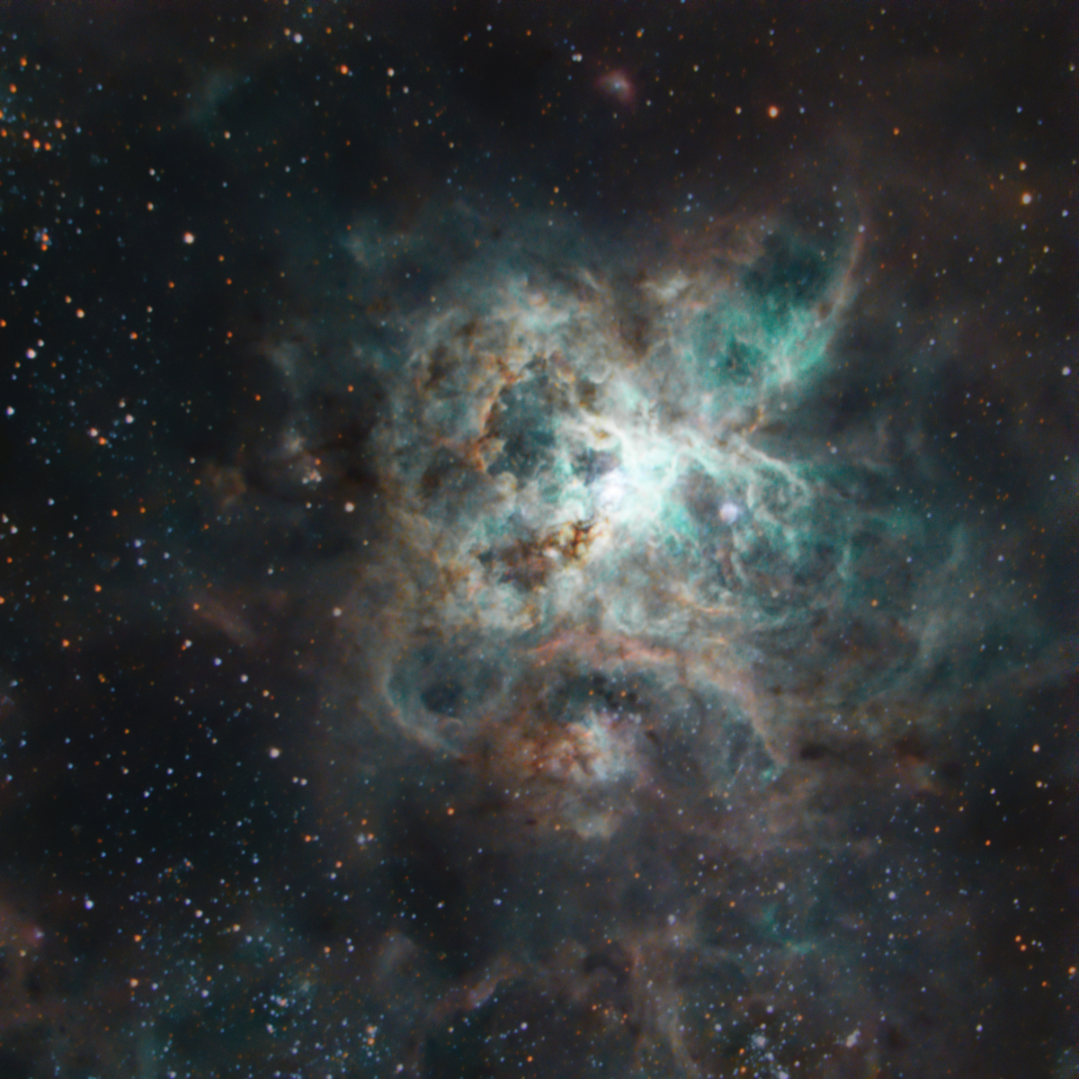 Tarantula Nebula (NGC 2070) This nebula is located not in our own Milky Way galaxy but in a neighbouring galaxy, the Large Magellanic Cloud. Astonishing that we can get such a good view of an object that is around 160,000 light years sitant.